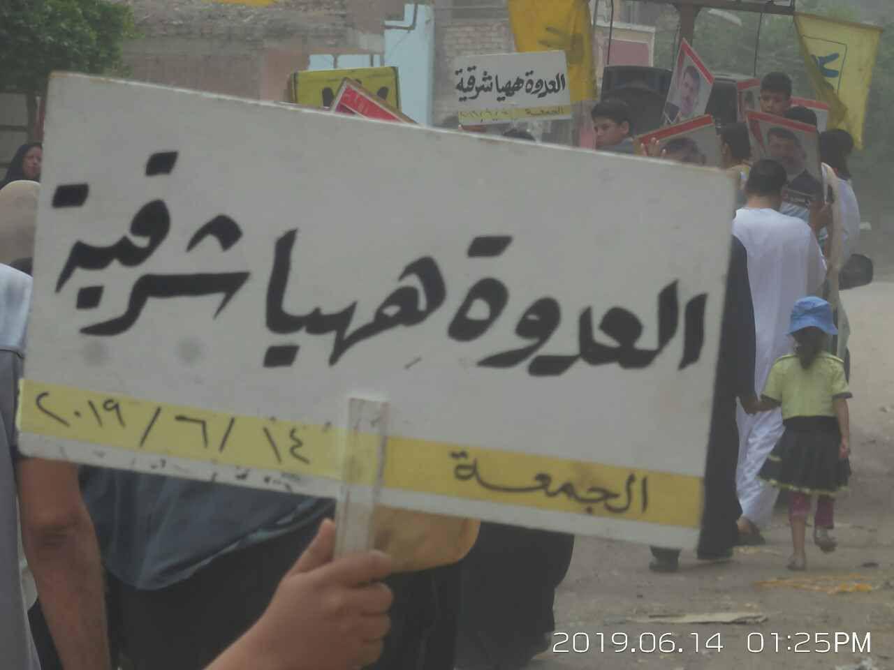 تظاهر ثوار الشرقية، اليوم بعد صلاة الجمعة، وخرجوا في مسيرة حاشدة انطلقت بقرية العدوة، مسقط رأس الرئيس محمد مرسي، للتنديد بالانتهاكات المتصاعدة بحق المعتقلين داخل سجون العسكر، والتي وصلت إلى حد القتل بالإهمال الطبي والتعذيب.