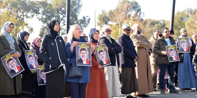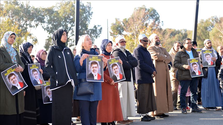 رفع المشاركون بالمظاهرة أعلام مصر وصور الرئيس الشهيد محمد مرسي، مطالبين بتحقيق دولي في جريمة اغتيال أول رئيس مدني منتخب في تاريخ مصر، حيث طالبت عضو مجلس بلدية مورلاند في المدينة، "سيو بولتون"، بفتح تحقيق دولي حول ظروف وفاة مرسي.
