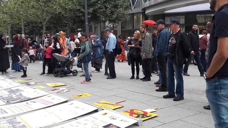نظم عدد من أبناء الجالية المصرية – بالتعاون مع الائتلاف المصري الألماني لدعم الديمقراطية والائتلاف العالمي للمصريين بالخارج – فعالية ومعرضا مصورا في مدينة فرانكفورت بألمانيا، بالتزامن مع الذكرى السادسة لمجزرتي رابعة والنهضة ورمسيس وسيارة الترحيلات.