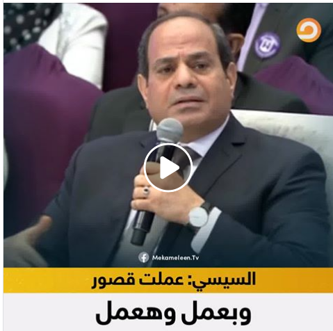 وزعم  أن الهدف مما قيل خلال الأيام الماضيه فى إشارة الى ما كشفت عنه فيديوهات الفنان والمقاول محمد على من فساد هو تحطيم إرادة الشعب وفقدانه للثقة والأمل.