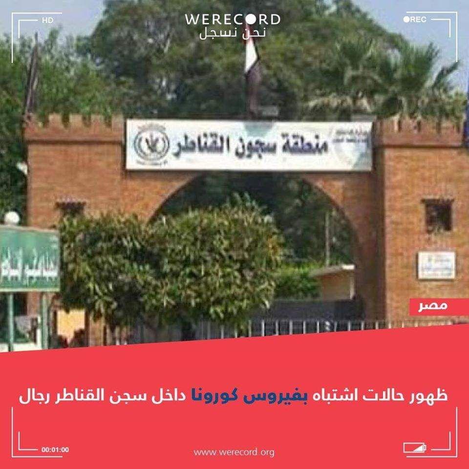 فيما وثَّق فريق “نحن نسجل” ظهور حالات اشتباه بفيروس #كورونا داخل ما لا يقل عن 4 غرف احتجاز داخل #سجن_القناطر_رجال، والذي يضم في معظمه سجناء على ذمة قضايا جنائية، حيث بدأت أعراض الإصابة في الظهور داخل السجن يوم 23 مايو الماضي.