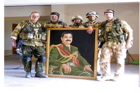 وازدادت تلك الشعبية عربيا وإسلاميا مع أحداث الغزو الأمريكي والغربي لبلاده عام 2003، خاصة بعد الحرب الكلامية بينه وبين الرئيس الأمريكي المتطرف جورج دبليو بوش التي سخر فيها من الحضارة العربية والإسلامية بوصفها حضارة رعاة “الإبل” وسكن “الخيام”، هنا عبر صدام عن اعتزازه بتلك الحضارة، مؤكدا أن راعي الإبل وساكن الخيام هو أفضل ممن سكنوا الكهوف ورعوا الخنازير.