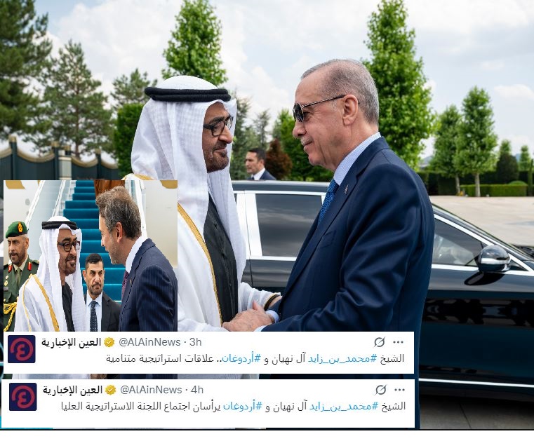 كما أن "بن زايد" فضل أن يكون في أنقرة في زيارة دولة بدعوة من الرئيس أردوغان، في اليوم التالي لذكرى 15 يوليو المجيدة التي أزاح فيها الشعب انقلابي العسكر وحطم رؤوسهم بالنعال، والهدف بحسب (وام): زيارة تعزز العلاقات الإستراتيجية بين الإمارات وتركيا.