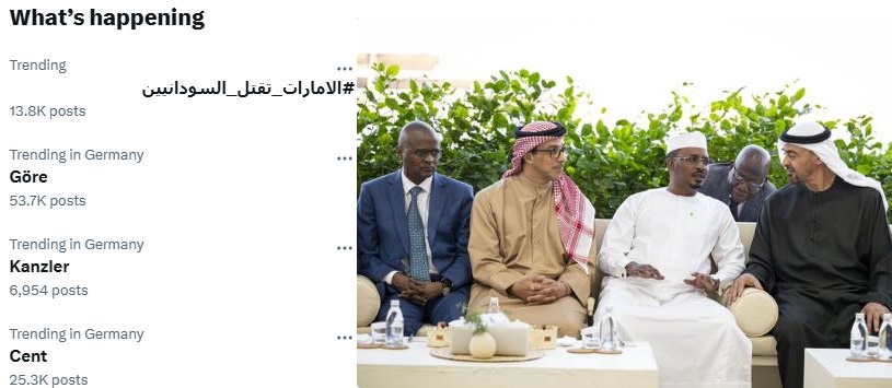 المحلل والصحفي السوداني مكاوي الملك وعبر @Mo elmalik قال: إن "كل الخيوط تتقاطع في أبوظبي، موضحا أن زيارة كاكا أو محمد ديبي على عجل ليتلقى أوامر “الشيطان بن زايد” في طاولة تُسمى زوراً خطة تنمية تشاد 2030 ، بينما حقيقتها هي خطة إعادة تموضع المليشيا المنهزمة في دارفور تحت غطاء اقتصادي واستثماري".