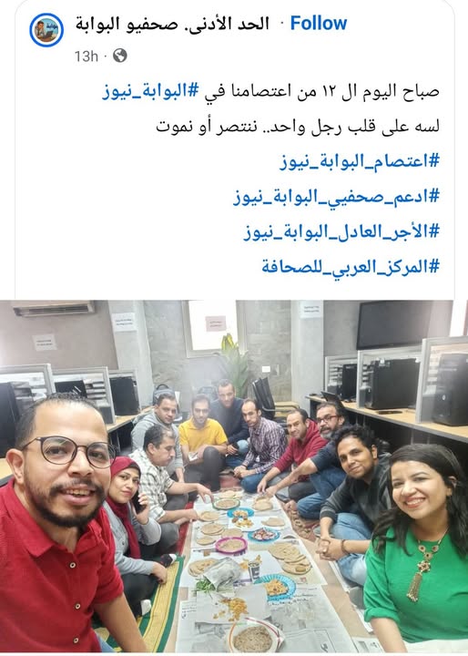وقالت الصحفية رشا عزب @RashaPress إن "أوضاعا مهينة ومذلة لصحفيي البوابة نيوز، معتصمون من اسبوعين واعلنوا اضرابا عن الطعام مؤخرا، والآن يجتمعون فى نقابتهم ضد بلطجة عبدالرحيم على وأبنائه المتحكمين فى مصير عشرات الصحفيين والرافضين لتطبيق الحد الأدنى للاجور..".