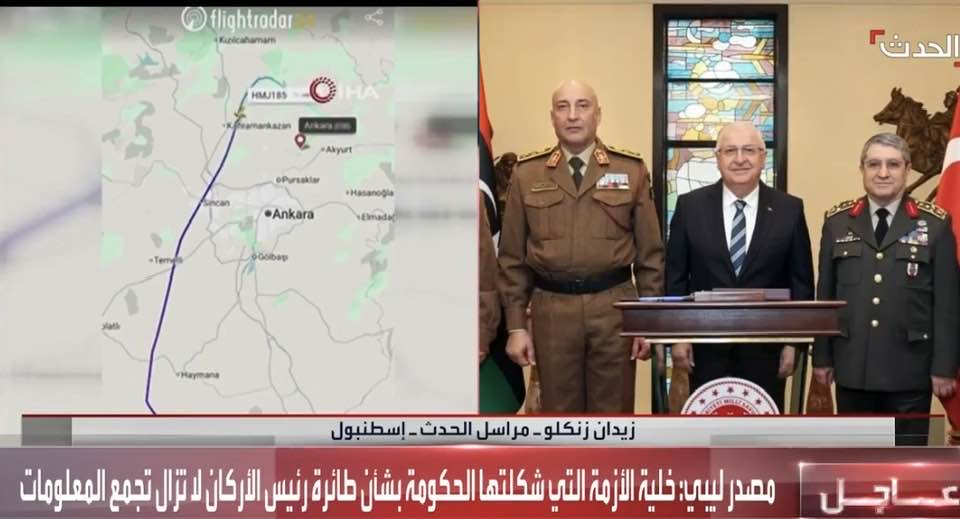 وكان لافتا أن رئيس جهاز المخابرات العامة المصرية، حسن رشاد، قدم تعازيه هاتفيا، لرئيس حكومة الوحدة المؤقتة في غرب ليبيا عبد الحميد الدبيبة، في ضحايا الحادث رئيس الأركان ومرافقيه، إثر سقوط الطائرة التي كانت تقلهم أثناء عودتهم من تركيا، فى مهمة رسمية.