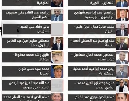 وتضم القائمة 21 محافظة شملتها تعيينات أو تغييرات، إلى جانب أداء نواب محافظين اليمين في محافظات عديدة. ورغم الإشارة إلى "تنوع الخلفيات"، تظل الألقاب العسكرية من نوع "لواء" و"فريق" هي الأكثر حضورًا في الصف الأول للمحافظين، وهو ما يعيد فتح سؤال قديم حول عسكرة الإدارة المحلية وحدود دور المدنيين.