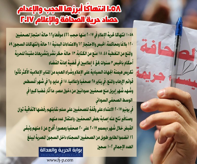 إنفوجراف| 1058 انتهاكا.. حصاد الصحافة والإعلام في 2017