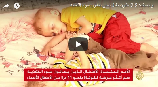 شاهد| “يونيسيف”: 2.2 مليون طفل يمني يعانون سوء التغذية