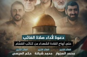 قبل أيام، دعت حركة حماس لأداء صلاة الغائب الجمعة الماضية 2 يناير الجاري، على أرواح القادة الشهداء من كتائب القسَّام الذين أعلنت استشهادهم وهم القادة؛ محمد السنوار ومحمد ...