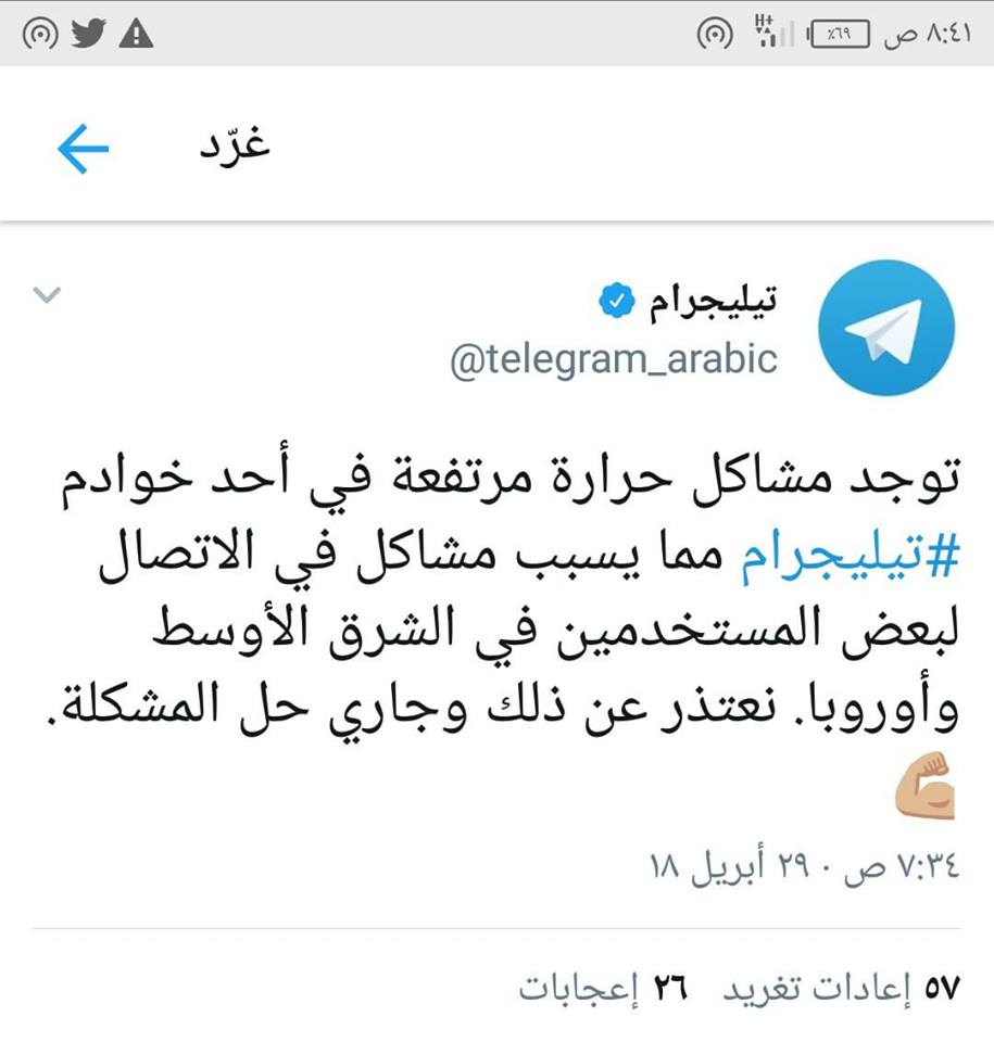 اعلن تطبيق تيليجرام عن سبب توقفه عن العمل، اليوم الأحد، في جميع أنحاء الشرق الأوسط وأوروبا هو مشاكل حرارة مرتفعة في أحد خوادمه، ما سبب مشاكل في الاتصال ...