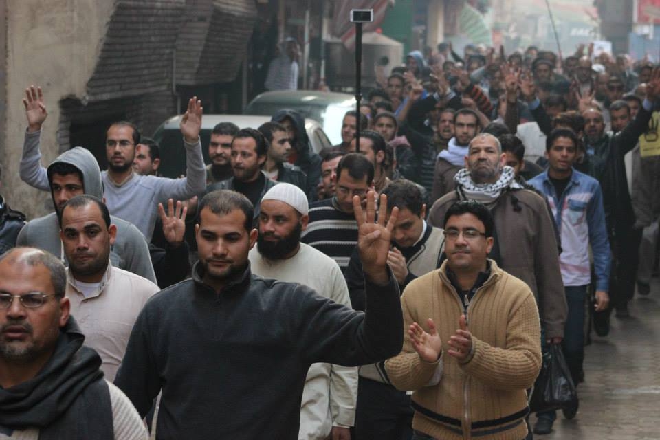ثوار المطرية يرفعون صور شهداء رابعة ويطالبون بالقصاص