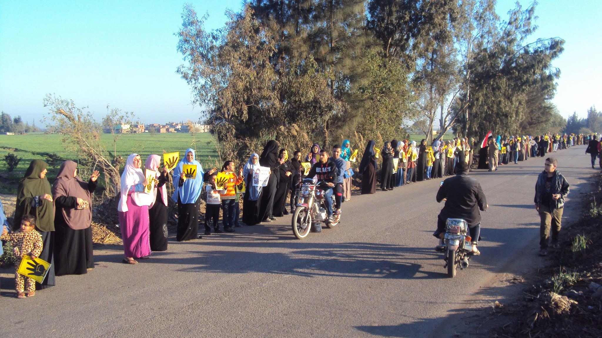 نظم التحالف الوطنى لدعم الشرعية ورفض الانقلاب بالتعاون مع حركة "7 الصبح" بالحسينية محافظة الشرقية سلسلة بشرية، صباح اليوم، تنديدا بحكم العسكر ضمن فعاليات أسبوع "الشعب يكمل ثورته" ...