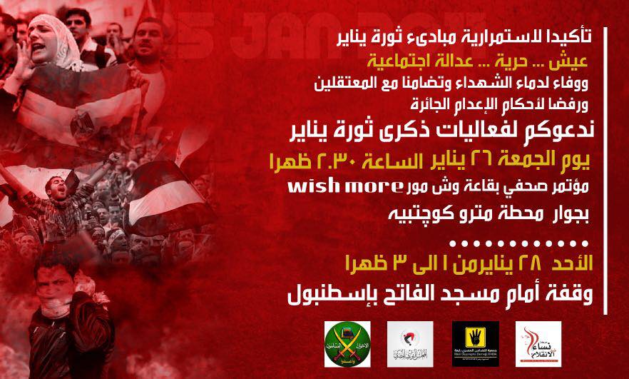 أعلنت عدد من الحركات الثورة للمصريين فى المقيمين فى تركيا عن تنظيم عدة فعاليات ثورة تأكيدا لاستمرارية مبادئ ثورة يناير “عيش حرية عدالة اجتماعية”، ووفاء لدماء الشهداء وتضامنا ...