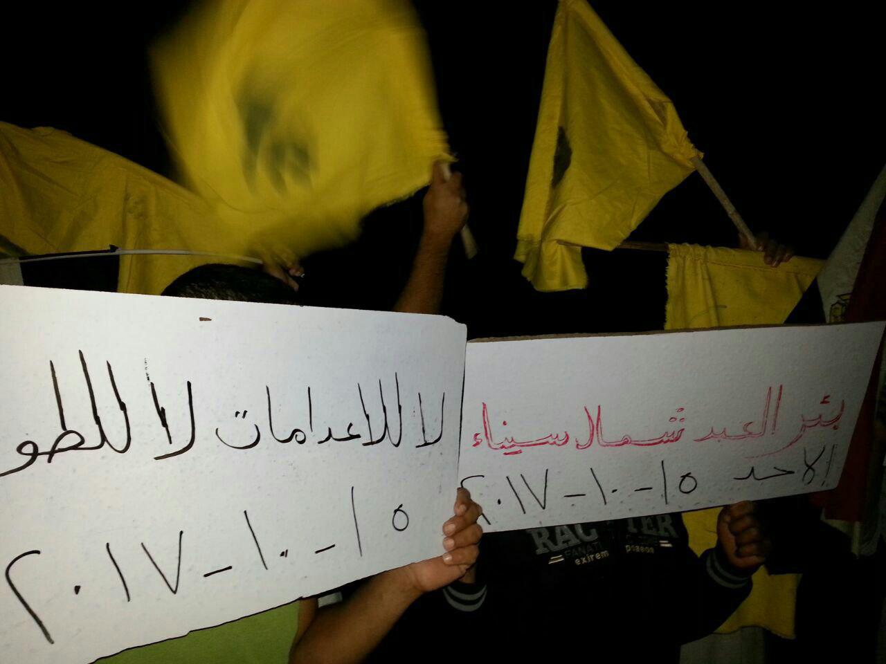 كتب عبد الله سلامة: نظم ثوار بئر العبد بشمال سيناء وقفة ليلية رفضًا للانقلاب العسكري، ضمن فعاليات أسبوع "لا للإعدامات.. لا للطوارئ"، الذي دعا إليه التحالف الوطني ...