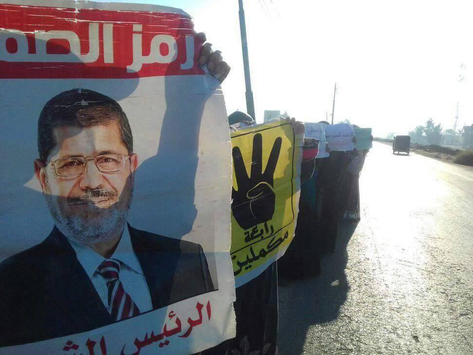 نظمت أسر الشهداء والمعتقلين بقرية أم الرضا صباح اليوم سلسلة بشرية على طريق دمياط – جمصة الزراعي.   رفعت المشاركات فيها صور الرئيس محمد مرسي وأعلام مصر ورابعة ...