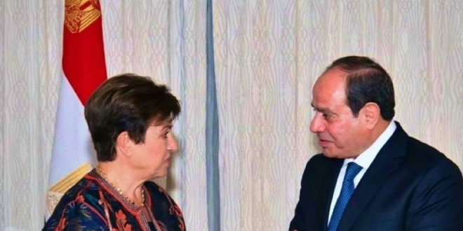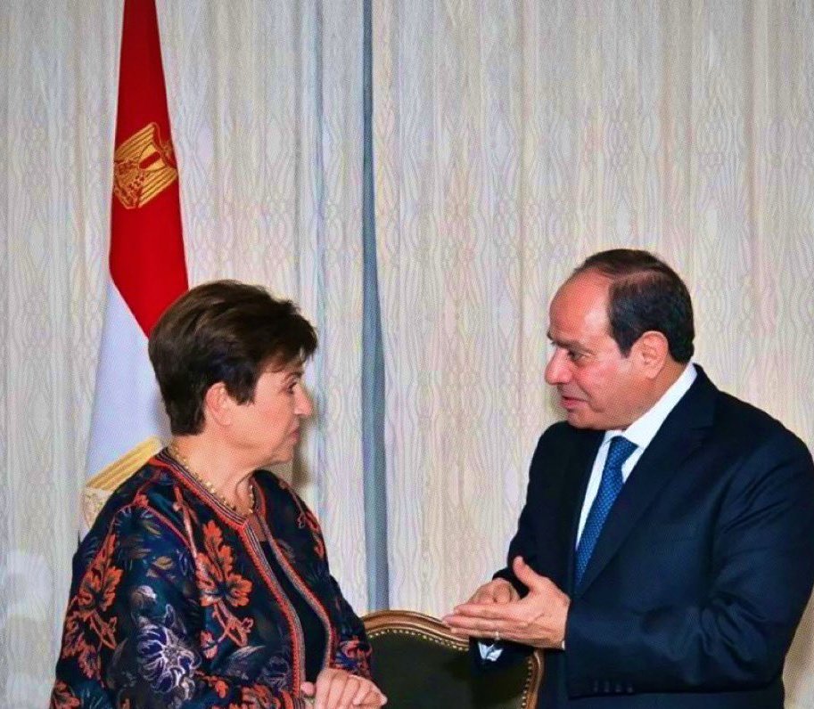وفي 11 أبريل أعلن صندوق النقد الدولي عن مفاوضات جديدة معه، للحصول على حزمة طارئة بـ3 مليارات دولار، فوق البرنامج القائم 8 مليار دولار والسبب -ليس كما تمتدح جورجيفا – بل بسبب خروج الأموال الساخنة، وتراجع إيرادات قناة السويس، وارتفاع تكاليف الطاقة بزعم الصراع الإقليمي.